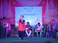 Sundarban Mela was held at Pakhiralay, Gosaba on Apr 15th and 16th from 5 pm to 8 pm to celebrate the Intangible Cultural Heritage (ICH) of Sundarbans. The festival was part of the collaborative initiative, Rural Craft and Cultural Hub (RCCH), undertaken by the Department of MSME&T, Govt. of West Bengal in association with UNESCO to strengthen ICH-based practices of the state and promote the grass-root creative entrepreneurs. On 15th April, Sundarban Mela started with a Baul music performance by Rahul Sardar and team from Nadia. The festival was inaugurated by Jhumur, Baul and Banabibi Pala artists from Sundarbans by watering a plant. Then the evening cultural program started with a Jhumur dance and music performance by Adibasi Banophul Sampraday (Led by Bablu Sardar), Shiv Durga Jhumur Sampraday (Shila Sardar) showcased their local culture and tradition through jhumur dance to the audience. Later, Adivasi Lokosanskriti (Bandana Sardar and team) group performed Jhumur dance accompanied with adivasi song. The last performance of the day was Banabibir Pala, the traditional folk theatre acted to please goddess Banabibi to protect the honey collectors from man eating tigers and keep their family and loved ones safe. The performance was enacted by Ma Suhashini Natya group from Sundarban led by Anuja Adhikari and her team. Sundarban being a tourist location and during the festival there were many outsiders to whom the performance was very touchy and they felt very happy to witness such a theatrical performance imbibed with the lifestyle of the people of Sundarbans. On 16th April, the festival started with Jhumur song and dance performance by Tusu Mata group and Pakhi Jhumur Sampraday (led by Putul Mandal) which was highly appreciated by the audience. As the tunes of Dotara started, the audience came live with and responded heartily to Bhatiyali music performance by Nabaneeta Mandal and team. Due to audience request the performance lasted an hour creating a different aura of music around the area. The last performance of Sundarban Mela was Chau dance from Purulia. It is a folk artform with elements of martial arts. Chau dance is performed with Chau masks and the dancers are highly skilled to perform vaults and jumps according to the beats of Dhamsa. The performance was led by Jagannath Choudhury and team Mitali Chau Maldi. They performed ‘Raaktasur Badh’ a performed of one hour which hold the audience to their chair. The performance was highly appreciated by the audiences and they proposed to have the team during others festivals in the area. Other than the main stage performance there were craft stall on the mela ground covering Shola, Stone jewellery, Incense, wood craft and hay craft.