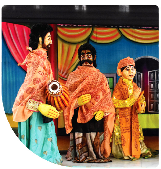 Puppetry, an ancient folk art, thrives as traditional entertainment in West Bengal's village fairs. Reflecting myths, legends, and epics, it manifests in three distinct styles: Beni Putul (Glove puppetry), Dang Putul (Rod puppetry), and Taar Putul or Suto Putul (String puppetry). Crafted from clay, paper maché, wood, or Shola, these puppets don vibrant attire, embodying diverse characters. Revered by puppeteers, about 200 of whom practice professionally in hubs like Muragacha and Sonamukhi, these artisans move in troupes, earning their livelihood through this art form. Each puppeteer carries a sense of devotion, considering their craft and puppets sacred, preserving this cherished tradition.