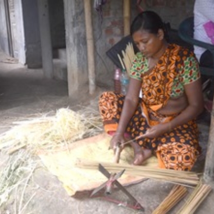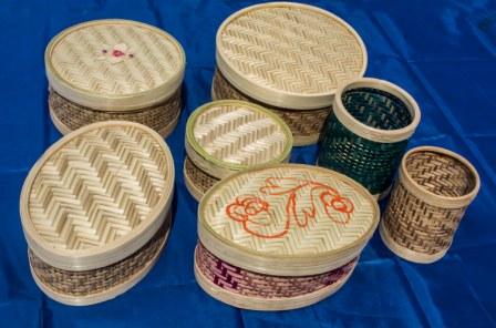 Bamboo baskets are traditionally used for winnowing for everyday use and rituals. They are made, then painted with auspicious symbols and are used in marriage and other ceremonies. Ordinary baskets, hand held fans and sieves are also woven as a part of traditional items. The majority of artists in the different districts mostly make traditional items. The artists of Purulia only make traditional items. The artists mostly procure bamboo from Malda and other parts of North Bengal.