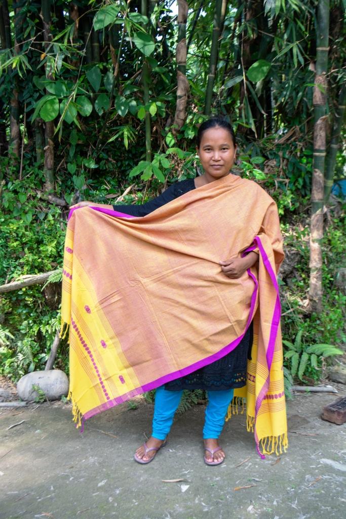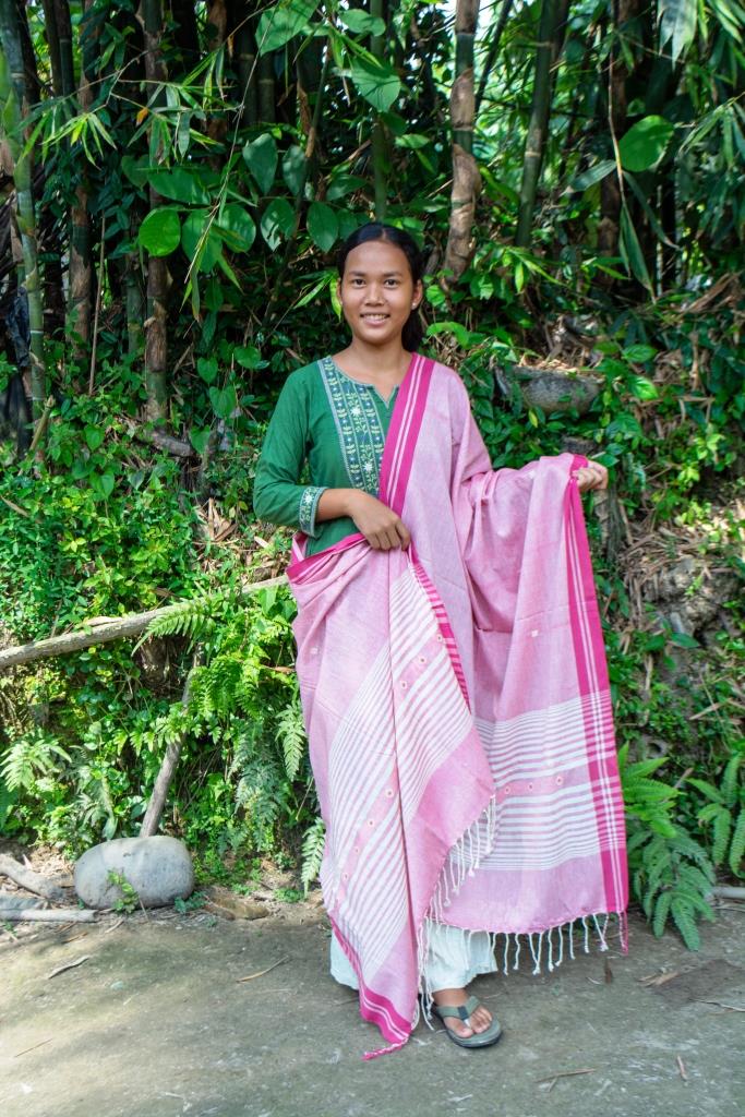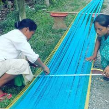 The artists make their traditional dress: Kemlet and Kambang which is the main product that they make. They also make Gamchas for their use.