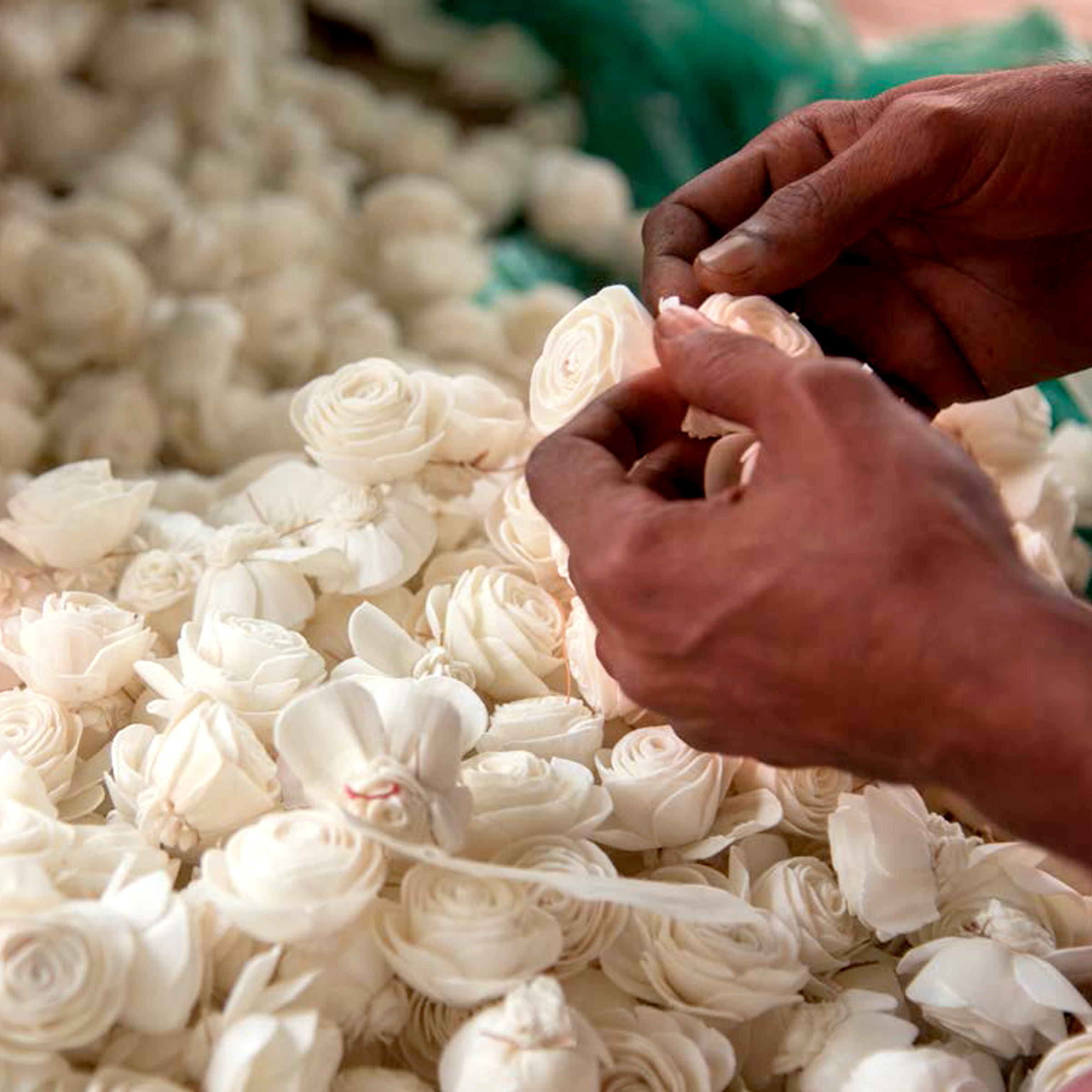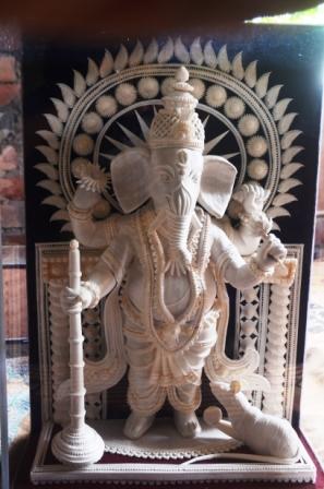 The artists make a range of items, from flower vases, wall hangings and decorative work on terracotta items to small three-dimensional chariots and idols of gods and goddesses. Popular Shola artwork also includes Indian classical dance forms and miniature art (like small Shola craft work in a glass bottle and souvenirs in places of tourist attraction like the Taj Mahal and Hazarduari Palace of Murshidabad). Recent additions to the list include the recently banned old Rs 500 and Rs 1,000 currency notes. However, there is strong competition from glitzy embroidery when it comes to decorating pandals.
