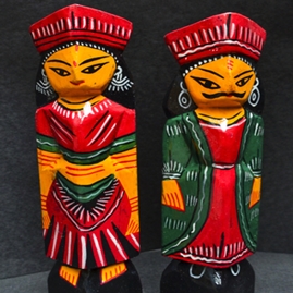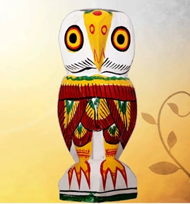 Wooden dolls found their market especially in rural fairs for centuries. Traditionally the crafts persons are specialized in making the wooden owl; considered auspicious for homes as it is the 'vahana' or escort of the goddess Lakshmi. Apart from these, the crafts persons used to make ‘Rashiputul’ (figures of Radha-Krishna on a single block of wood), Durga, Laksmi, Saraswati, figures of the King, the Queen, and of owls.