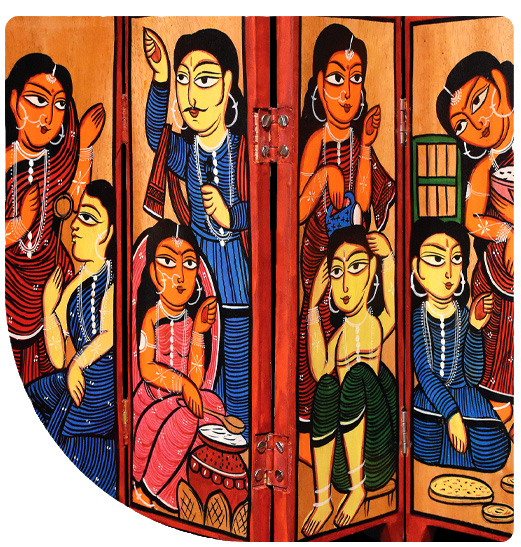Patachitra, an ancient folk-art originating from Bengal, is a form of traditional scroll painting on cloth. The artists, referred to as 'patuas,' skillfully depict a wide range of subjects, including mythological tales, tribal life, rituals, local legends of Hindu deities, contemporary stories, historical events, and more. Using natural colors derived from trees, leaves, flowers, and clay, these painters create vibrant and captivating artworks.