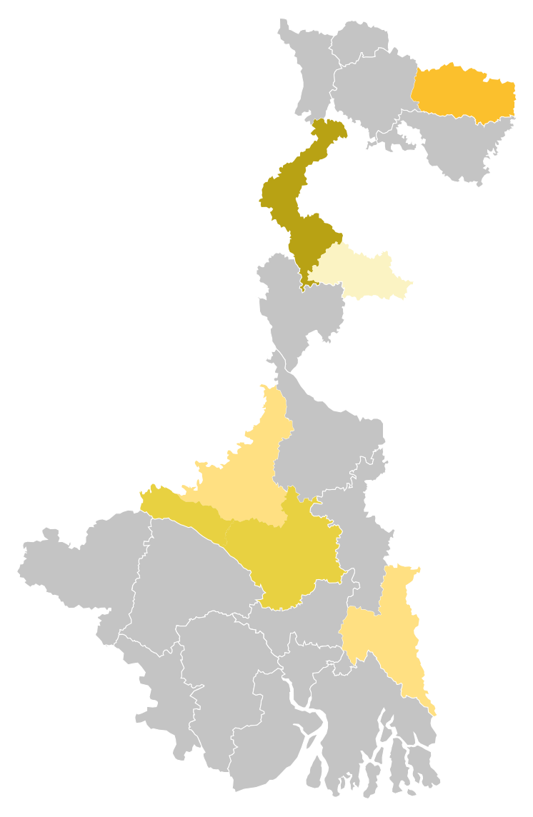 The practice of Dhokra weaving has been officially recognized since RCCH I (2016 onwards). The Uttar Dinajpur district is home to 1468 Dhokra weavers, while Dakshin Dinajpur boasts a community of 2634 weavers actively engaged in this craft.